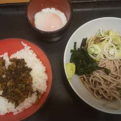 半そばにはネギ・わかめ・揚げ玉、半ごはんには高菜漬け。今日の温玉は高菜ご飯に合わせることにして、真ん中に凹みを作って流し込み。高菜もろとも混ぜ合わせて食べ進めます。半分ほど食べたらそばに着手、わさびをちょん付けしながら麺を啜っていきます... 続きを見る